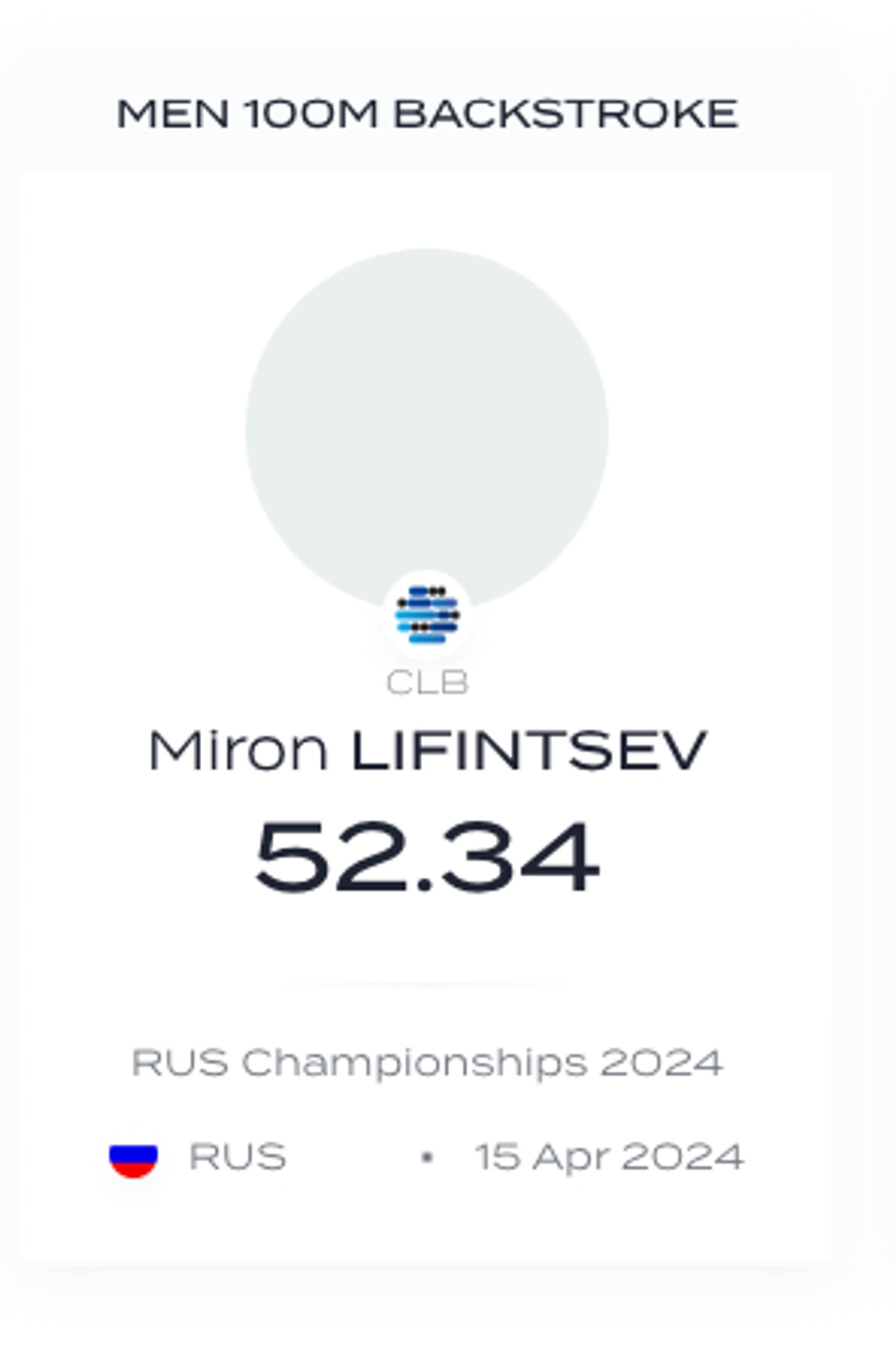 У World Aquatics есть аббревиатура CLB, которую сейчас часто применяют для российских спортсменов. Например, к юниорскому рекорду мира Мирона Лифинцева. Она обозначает причастность к клубу или, в российской действительности, к региону.