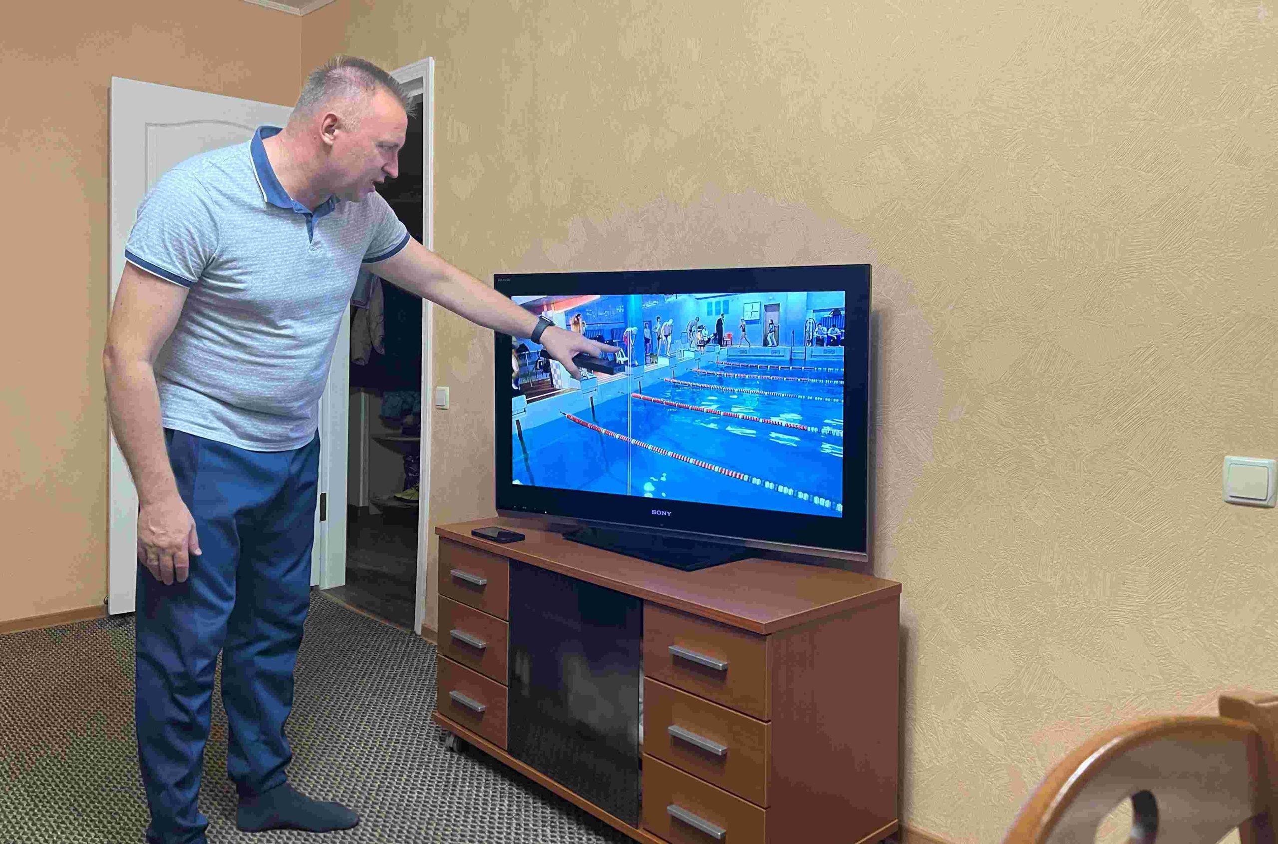 Тут же счастливый Иван заходит в комнату с дочерью на плечах. Сергей Васильевич включает телевизор и говорит, что подготовил видео – нескольких заплывов сына. Из того, что увидел и вместе со всеми вновь сопережил. Во-первых, на записях были непрофильные дистанции Ивана — 200 м брасс и 200 м баттерфляй, хотя на данный момент он более известен в брассовом спринте (50 и 100 метров). Во-вторых, оба заплыва были «про характер» — герой этого повествования везде терпел до последнего, а в конце непременно побеждал, хотя, казалось, что вероятность данного события стремится к нулю. Словом, папа знает, что показывать.