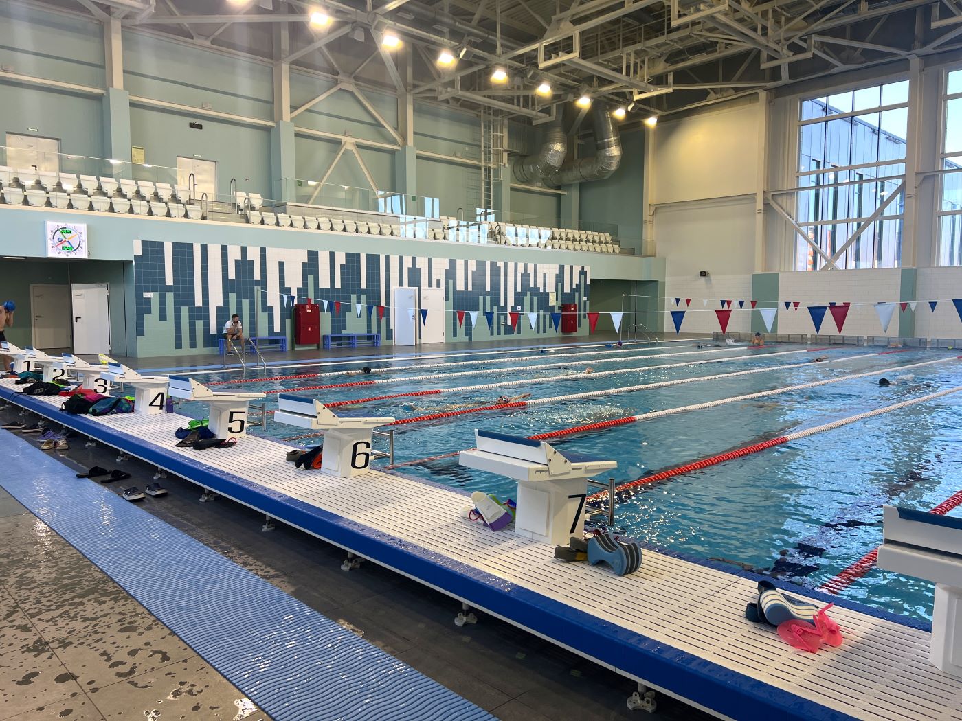 Спустя еще минут пятнадцать – всё не только потрясающе красиво, но и довольно близко, если судить по питерским или московским меркам – приезжаем в бассейн «Волна». Это 25-метровая чаша ФОКа с тремя водными дорожками. Директор бассейна Олег Борисович Каюн сопровождает нас. – Бассейн торжественно открыли в конце 2020 года. Основными инициаторами строительства были губернатор области Сергей Константинович Носов и депутат областной думы и предприниматель Александр Александрович Басанский. – Сколько человек живет в Оле? – Не больше пяти тысяч. – делится статистикой Олег Борисович. Чувствую, что потихоньку начинаю потеть. Градусы в бассейне явно не спортивные. – На данный момент спортивных групп у нас нет, продолжает экскурсию Каюн. – Пребываем в поиске тренера. Раньше брат Ивана, Виктор, тренировал здесь, но потом снова перебрался в город. Кстати, Иван, передавайте ему привет, тепло его вспоминаем. – Да и вообще у вас здесь не холодно, – очень тонко подмечаю я. – Практически, как в джакузи. – Все-таки чуть прохладнее, но близко, – смеется Олег Борисович. – Посетителям нравится. Все-таки «за бортом» у нас холодновато.