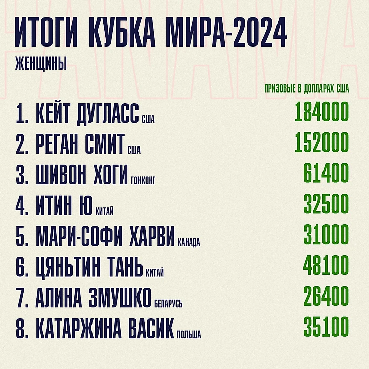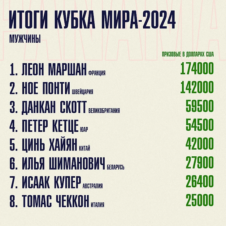 Дополнительно по 10.000$ можно было заработать за каждый рекорд мира и, так называемые, «короны» — победы на одной дистанции на всех трех этапах.