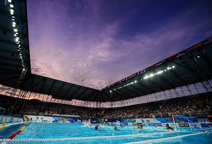 Главный бассейн в 2015-м установили прямо на футбольном газоне «Казань Арены» – решение, принесшее проблемы футбольному «Рубину». Трибуны на 14,5 тысячи тоже были временными, а операционный бюджет чемпионата, по данным «Ведомостей», составил более 3 млрд рублей.
