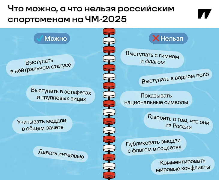 Не разрешается комментировать какой-либо конфликт, какую-либо страну, находящуюся в состоянии конфликта, или любую тему, которая могла бы связать их участие в чемпионате мира по водным видам спорта в Сингапуре 2025 года с какой-либо страной, находящейся в состоянии конфликта», – официальное разъяснение от World Aquatics.