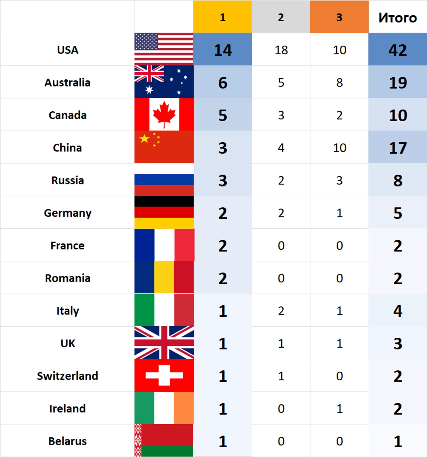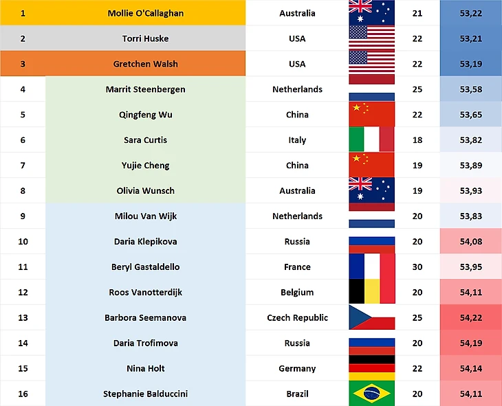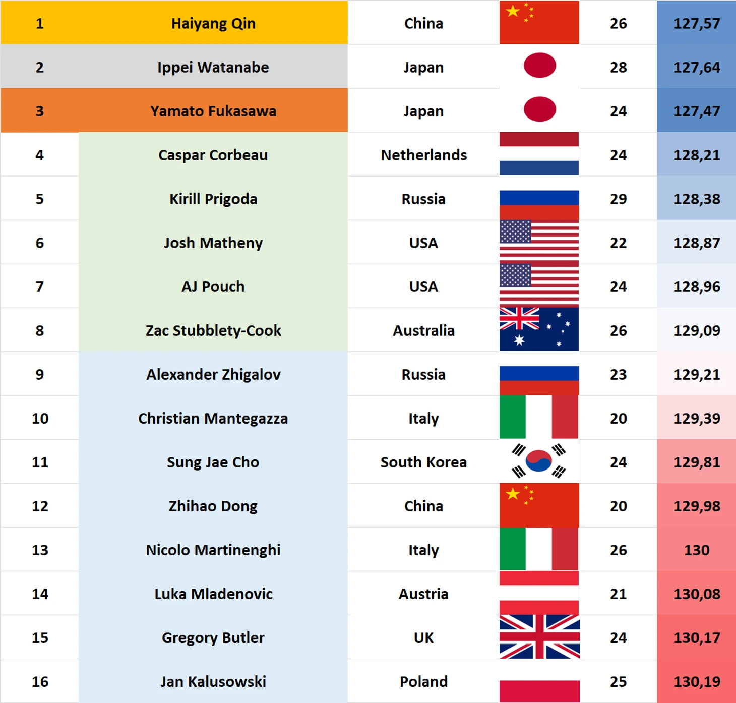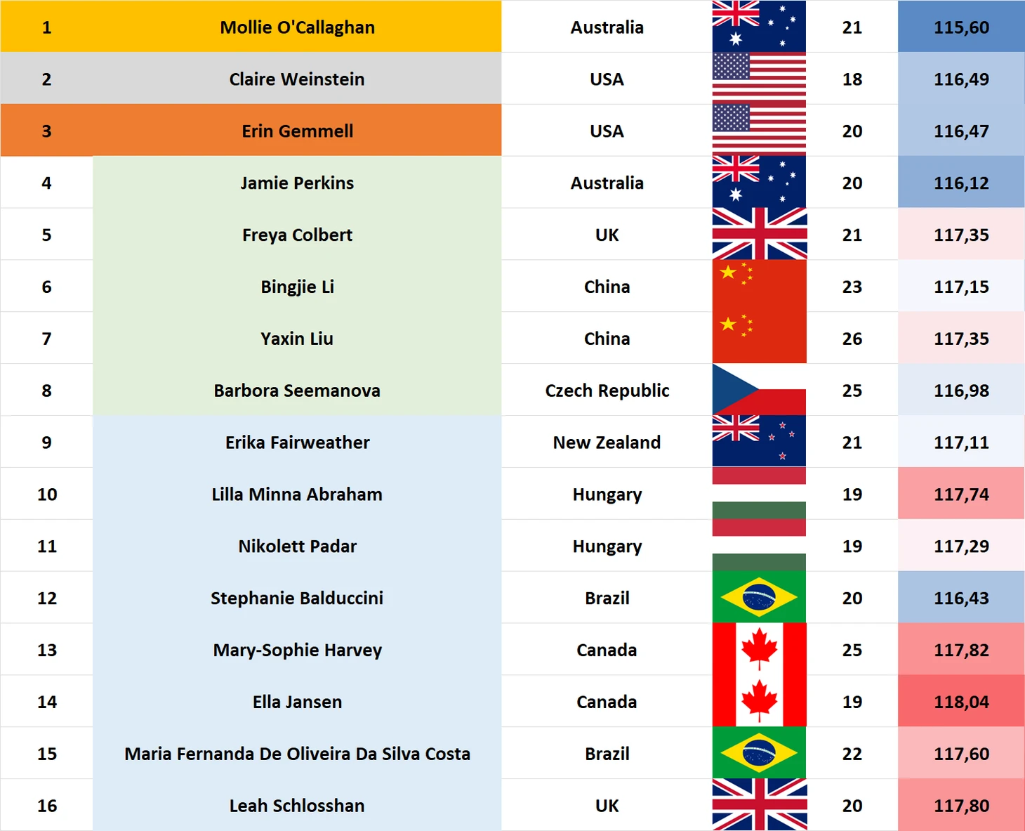 В связи с тем, что снялись некоторые спортсмены, придется сделать пятую часть. Леон Маршан снялся с дистанций 200 метров брассом и баттерфляем, а следовательно, у нас будут новые победители, из менее заметных — снятие Шивон Хоги (100 и 200 вольным стилем). Соответственно, изменения затронут и медальный зачет.