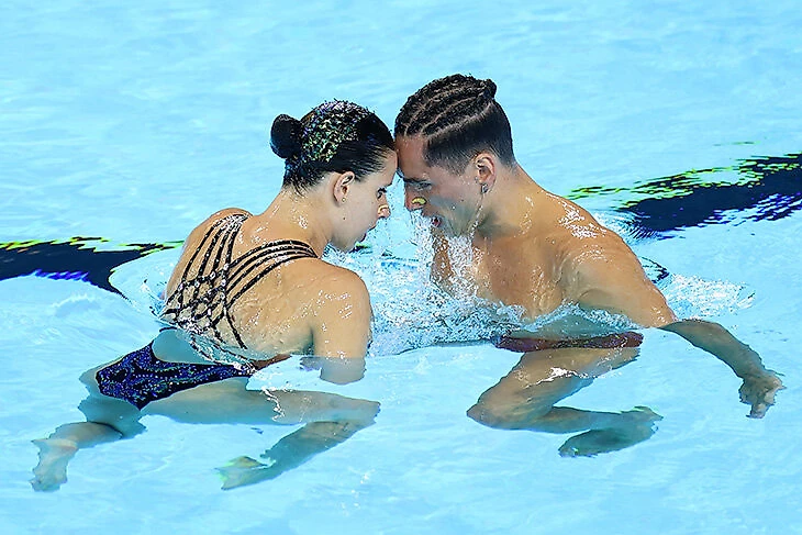 И как раз заключительный вид – произвольная программа микстов – изначально вызывал особые опасения. У Испании очень красивый дуэт, классная программа – хореографическая, похожая скорее на показательный номер. Они весь сезон выступали на этапах Кубка мира, и судьи уже тогда за художественное впечатление ставили им десятки.