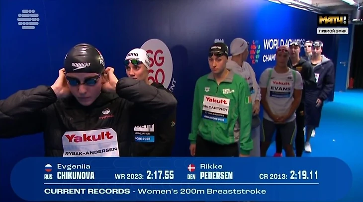Вообще, российский флаг на ЧМ в Сингапуре уже появлялся, но не в эфире, а в протоколах – World Aquatics перед началом турнира почему-то опубликовала триколор в стартовых протоколах эстафет.