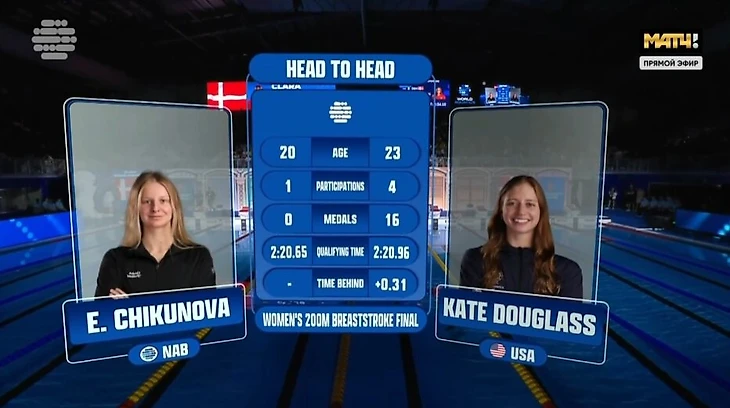 Сейчас флаг не помог: от Чикуновой ждали победы, но Женя не удержалась за американкой Кейт Дугласс и приплыла второй. Помешал ротавирус – Чикунова заразилась прямо на ЧМ. Подробности – в репортаже Владимира Иванова.