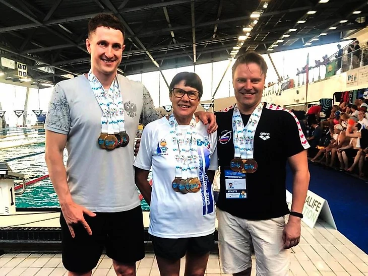 - В Турине был не чемпионат Европы, это были “Европейские игры мастерс”. Международный олимпийский комитет проводит соревнования категории “Мастерс”, и справедливости ради отмечу, что конкуренция там была совершенно несопоставима с чемпионатом Европы или с чемпионатом мира. Не знаю уж по какой причине, может уровень соревнований высокий, но состав участников и их количество было совершенно небольшое. У меня там, объективно говоря, из конкурентов был вот только один спортсмен. По-моему, его звали Олег Иванов. И я ему проиграл сотку, а потом выиграл 200 и свой коронный полтос. Да, и эстафету мы одну выиграли. Поэтому нет, там не было никакого феноменального результата. Я проплыл достаточно неплохо, но никаких личных рекордов не было, и все эти медали дались достаточно легко и просто. Это, кстати, моя последняя поездка на европейский континент на данный момент. Потом пандемия наступила буквально на следующий год, и все, больше я не был в Европе.