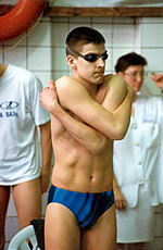 "Точно помню, что насильно меня никто в бассейн никогда не тащил. Более того, однажды мама с папой привели меня на просмотр к знакомому тренеру по акробатике. Мне там совсем не понравилось. А в бассейн пришел сам, вместе с теми детьми, которых отобрала к себе в группу мама, просматривая "первоклашек". Очень хотелось плавать так же быстро, как Аня. И по разным городам ездить, как она. И выигрывать тоже. Сестра в этом отношении всегда была для меня ориентиром. В 1993-м мама с папой впервые взяли меня на сбор на "Озеро Круглое" - поехали туда с Аней и другими своими учениками, меня же было просто не с кем оставить дома. Именно там я впервые в жизни увидел Александра Попова, Дениса Панкратова, Евгения Садового... Я смотрел на них с открытым ртом. Однажды мы даже в Москву на одном автобусе ехали, я сидел рядом с Дашей Шмелевой и никак не мог поверить, что могу запросто до любого дотронуться. В то же самое время не могу сказать, что кто-то был для меня кумиром."