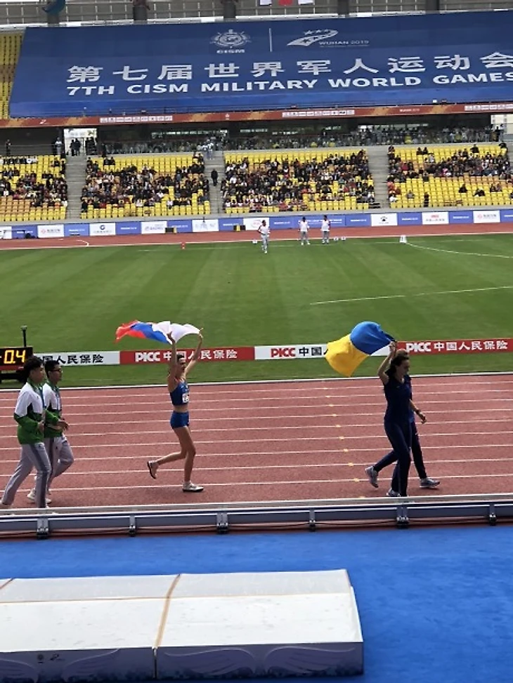 Российские спортсмены выступают в Ухане под флагом страны, несмотря на отстранение Всероссийской федерации легкой атлетики (ВФЛА), которое длится с ноября 2015 года.