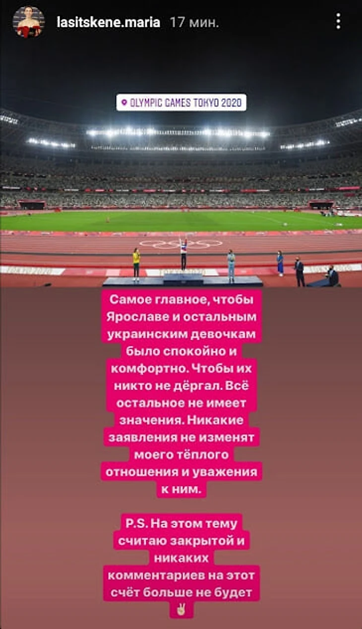 Олимпийская чемпионка Токио-2020 в прыжках в высоту Мария Ласицкене высказалась о ситуации с критикой украинки Ярославы Магучих из-за совместных фотографий на Играх.