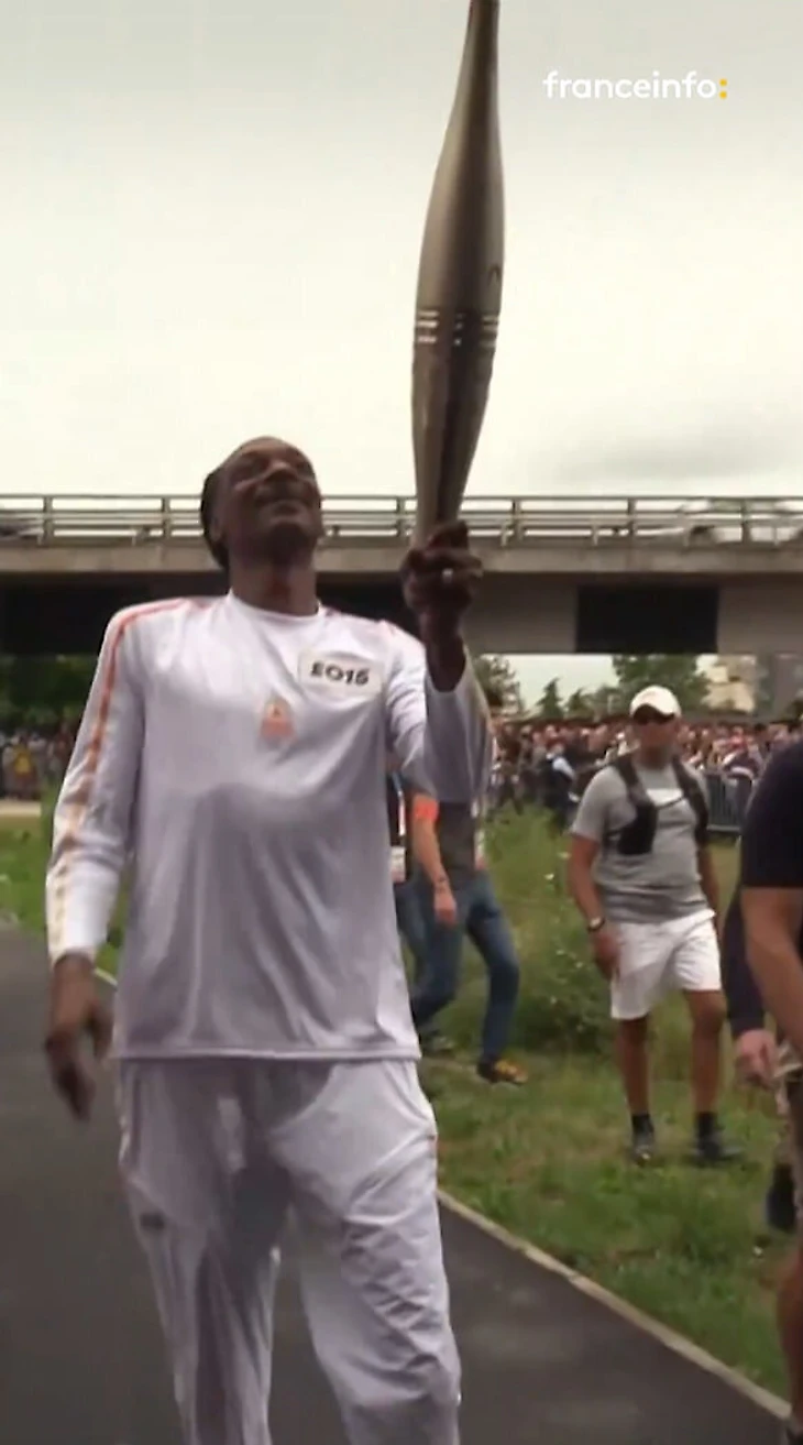 Американский рэпер Снуп Догг пронес олимпийский огонь в Париже.
