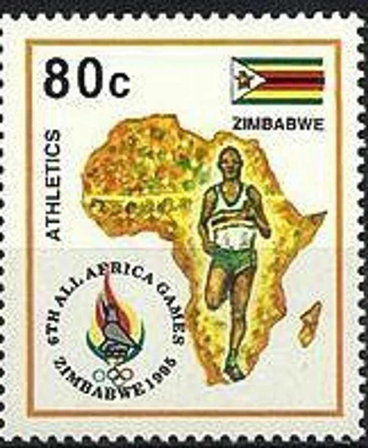 И напоследок: как известно, атрибутом многих крупных спортивных соревнований являются марки. Африканиада-1995 не исключение. Покольку фотокадров с тех событий найти не удалось (про видео вообще молчу), то предлагаю Вашему вниманию марку, посвящённую легкоатлетам: