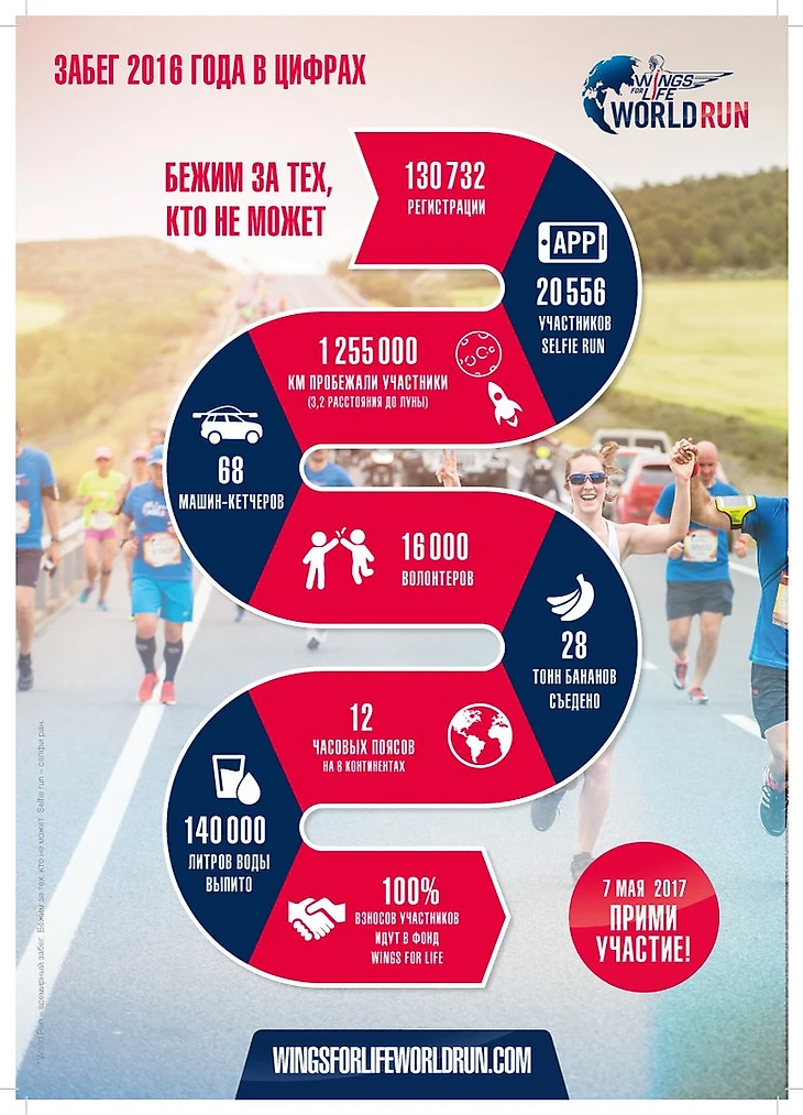 Регистрация на забег доступна на официальном сайте http://www.wingsforlifeworldrun.com/