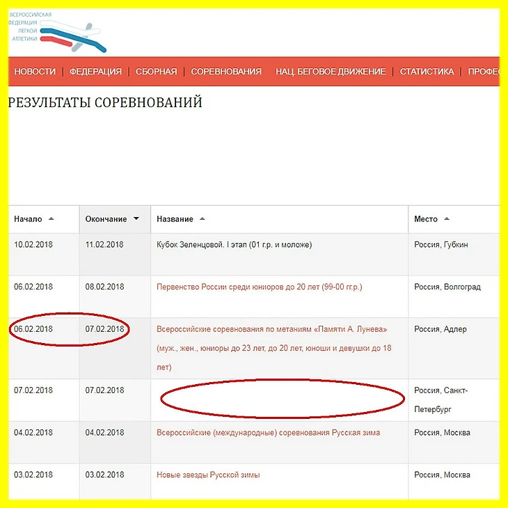 Так, 06-07.02.2018 г., в Адлере, прошли Всероссийские соревнования по длинным метаниям памяти А.А. Лунёва. На момент выхода этой публикации (22.23 12.02.2018 г.), а прошло больше пяти суток - итоговых протоколов на сайте нет.