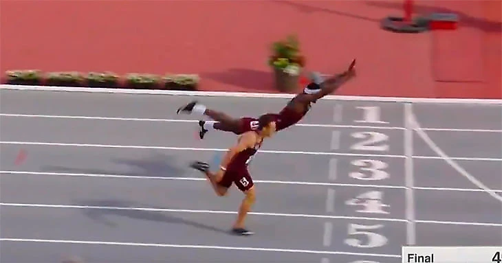 Американец Инфинит Такер, которому в конце мая исполнится 21 год, поразил всех на финише 400-метровки с барьерами. Это случилось на турнире SEC Outdoor Track & Field Championships в Фейетвилле.
