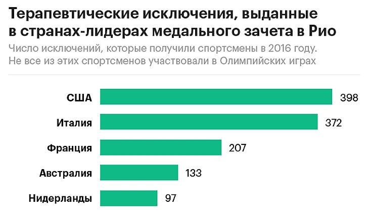 Как обычно за благими намерениями получился фактически узаконенный допинг для особых лиц. Итак кто же пользуется терапевтическими исключениями? Вот данные по 2016 году (Олимпиада в РИО)