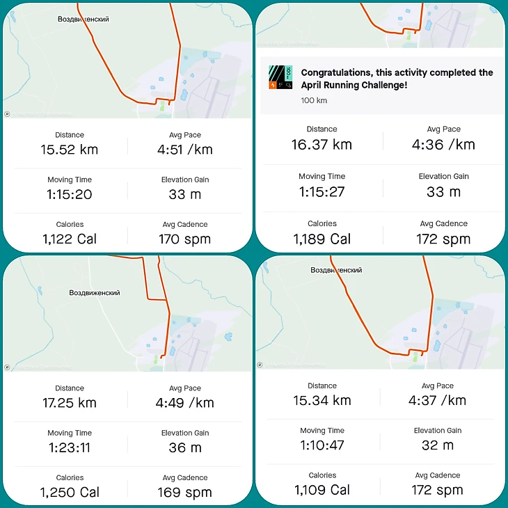 Итоги Моей беговой недели: > 70 километров бегового объема [5/7] 1] понедельник: 15.5 км стабильного, легкого бега, в ветреных условиях с одним ускорением на тысячу метров. 2] вторник: длительная-для Моего текущего положения, тренировка в 17 километров > 80 минут легко, на развитие АЭРОБНОЙ БАЗЫ. 3] четверг: фартлек 15.5 километров - 70 минут, стартовал в классическую весеннюю погоду, солнце и ветер, а финишировал в снежную метель. 4] пятница: темповый бег 16 километров, средний темп 4.36 минут на километр, с ускорениями по 400 метров х5 5] воскресенье: легкий бег на развитие общей выносливости и внимание к технике.