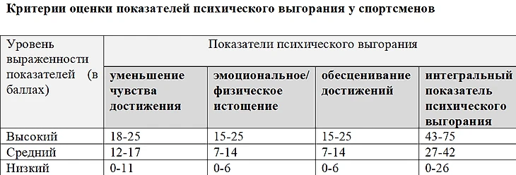 [6] См. Адаптация опросника T. Raedeke, A. Smith для оценки психического выгорания у российских спортсменов (Е.И. Берилова, «Физическая культура, спорт - наука и практика», 4-й выпуск, 2016-й г.).
