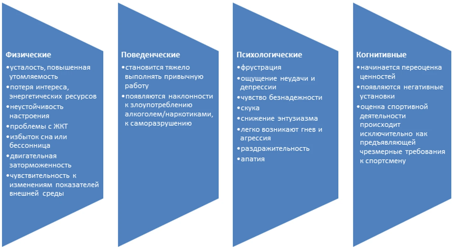 Выгорание имеет «отраслевую» специфику. В спорте оно определяется в виде трехкомпонентной конструкции: