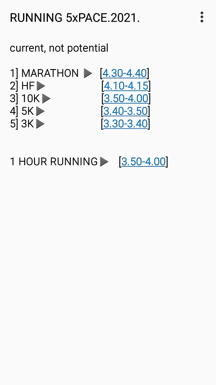 Метод определения темпа "правило четырех-условно секунд". Темп от 1.5 километра до марафонской дистанции снижается линейно при каждом переходе к более длинной классической дистанции (1500, 3000, 5000, 10000, 21.1., 42.2). Четыре секунды - условно, зависит конкретно от вашего текущего темпа на дистанции, показанного на соревнованиях, а не целевого. Если 5 км за 20 минут, а цель за 19 - рассчитывать пять темпов, исходя из 20минутного, а не 19минутного результата. Правило просто и универсально!