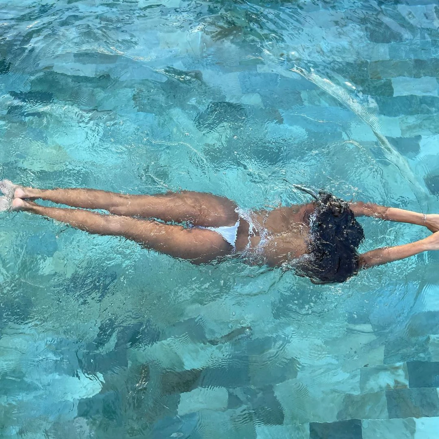 Она искупалась в бассейне топлес, подписав свой снимок: «Красиво же?». Тем самым она вызвала бурю восторга в комментариях.