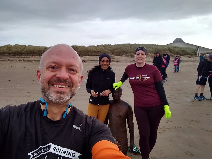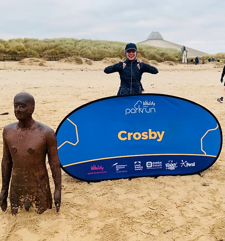 В Соединенном Королевстве есть несколько пляжных паркранов. Трасса нашего паркрана представляет собой смесь песка, асфальта и травы. Джанет, наша event-директор, организовала Crosby parkrun, и вероятно, думала, что пляжное местоположение и «металлические люди», которые являются туристической достопримечательностью, будут достаточно привлекательными чтобы заинтересовать parkrun-сообщество. Так и получилось, поскольку у нас много посетителей.
