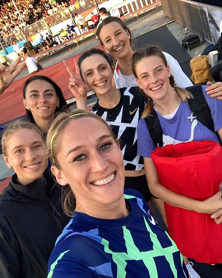 Прошлой осенью после Олимпийских игр в Токио Паттерсон выложила фото с финала «Бриллиантовой лиги» в Цюрихе. Там она — вместе с Марией Ласицкене, которая то ли обнимает, то ли нет Ярославу Магучих.