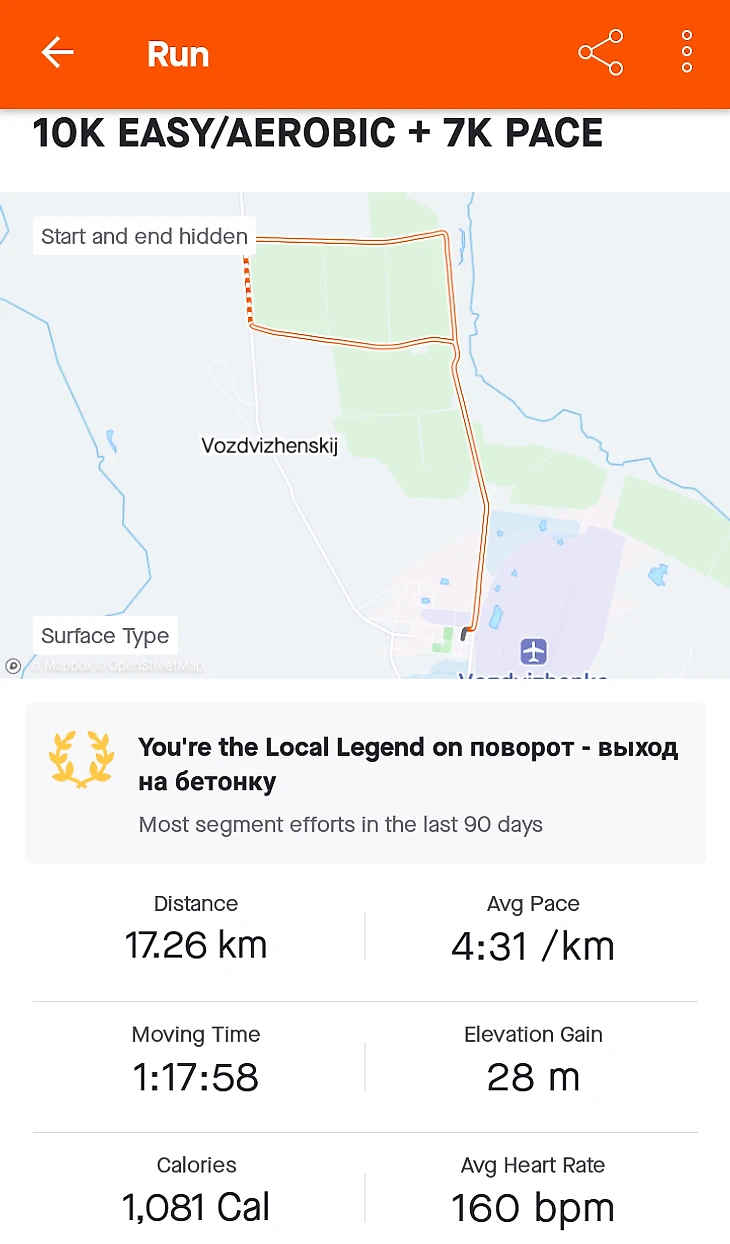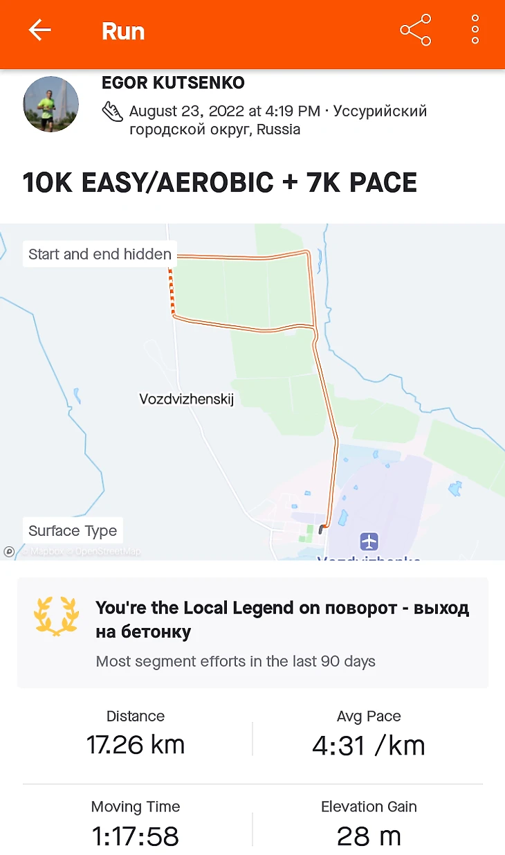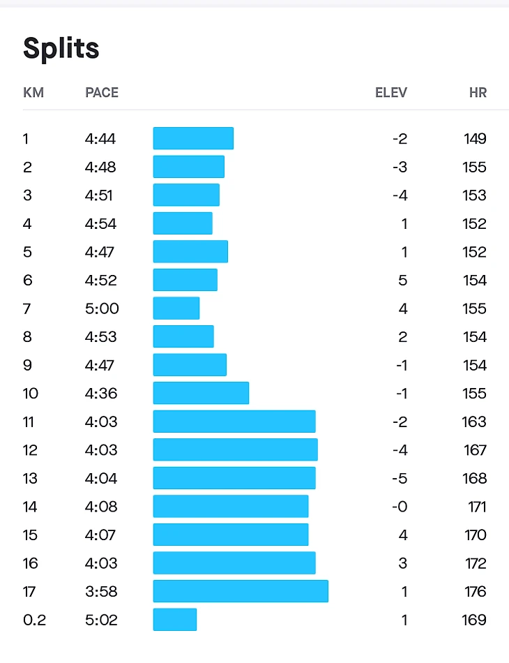 Ко дню гонки у должно быть довольно хорошее представлении о контроле темпа, поскольку после первых метров старта может создаться ошибочное заблуждение в виде ощущения того, что бежать можно быстрее целевого темпа, и это слишком резвое начало, которое необходимо превентивно обуздать, при его реализации, в дальнейшем, может сказаться негативным образом.
