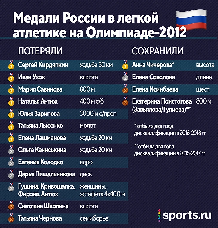 Все остальные наши призеры Лондона-2012 (включая участниц эстафеты) в разное время отбывали допинговые дисквалификации.