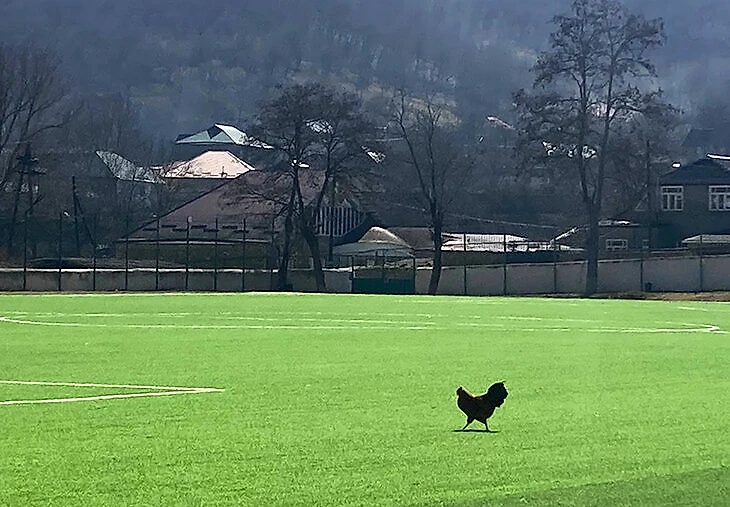 Дорожки, правда, асфальтовые, и с шестом тут не прыгают – как и в длину, высоту или тройным. Но в футбол и любимый местными волейбол играют регулярно. В этот раз на тренировку явился только петух, потому что утро: дети в школе, взрослые – на работе. Вечером, как говорят, тут аншлаг. Хотя вместимость по меркам Табасаранского района фантастическая: максимально 1500 посадочных мест, при том, что население Хучни – всего 3200 жителей!