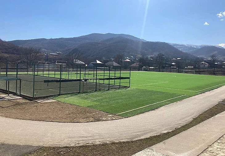 Почему же мы не отправились в Чувек, где родился и вырос Гаджи Исинбаев? Потому что именно в Хучни имеется уникальный стадион. Выглядит он словно в Швейцарии, смотрите: