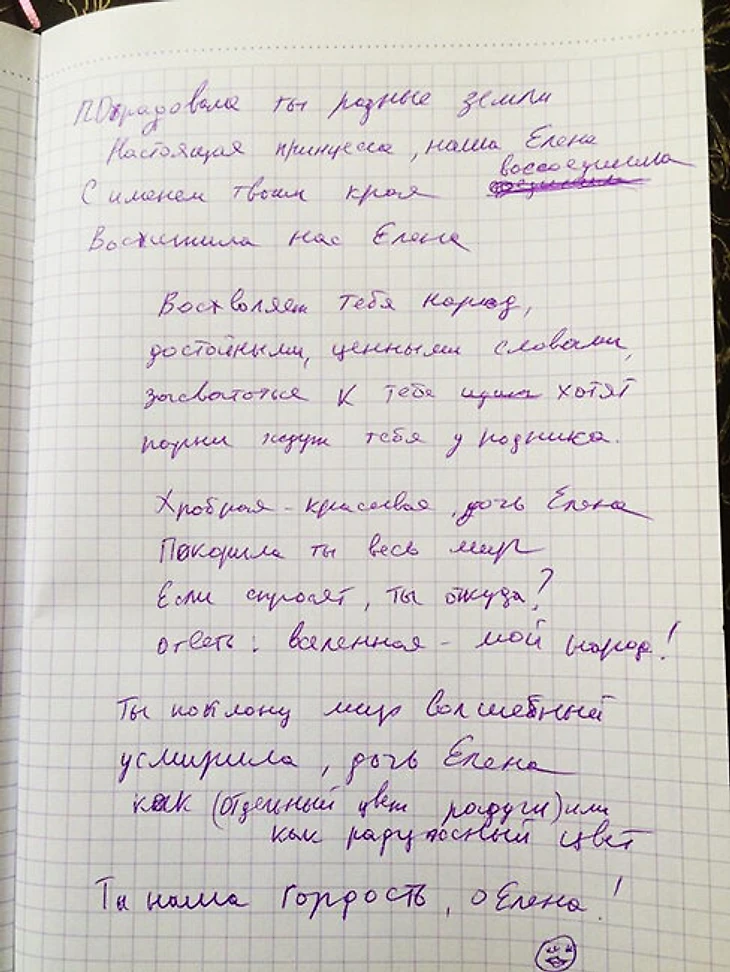 На эти слова написана и музыка. Вот песню об Елене исполняет известный табасаранский певец Абдулла Мирзакеримов.