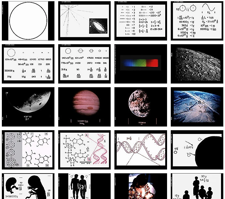 • последний блок записей – изображения. На пластинках фотографии Земли, анатомические схемы, пейзажи, фото животных, но больше всего кадров с людьми в различных ситуациях.