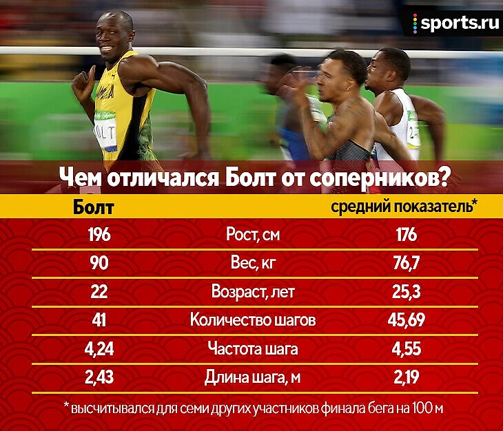 – Считается, что одно из ключевых преимуществ Болта – это высокий рост. Но если бы все было так просто, то все спринтеры бы были высокими?