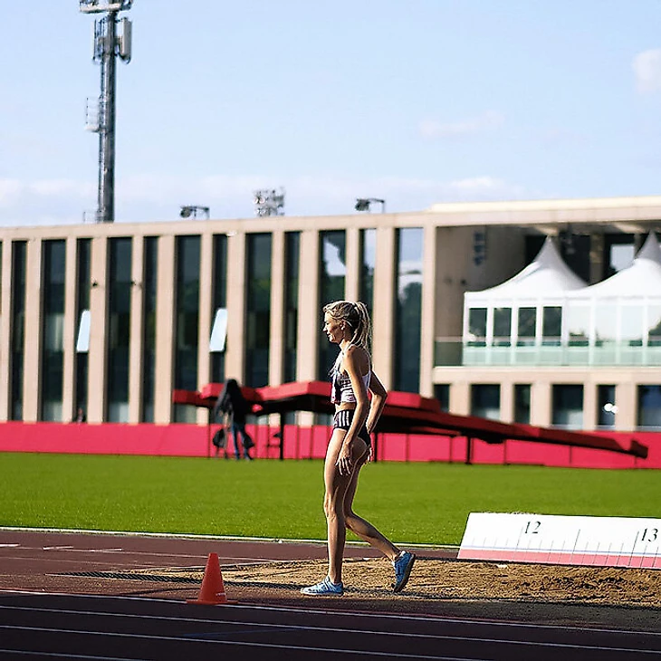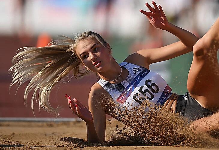 Специализация – тройной прыжок. По юниорам она выигрывала чемпионат Европы-2015, но сейчас показывает средние даже по внутренним меркам результаты. Что не мешает ей кайфовать от жизни и примагничивать внимание зрителей к сектору с песком.