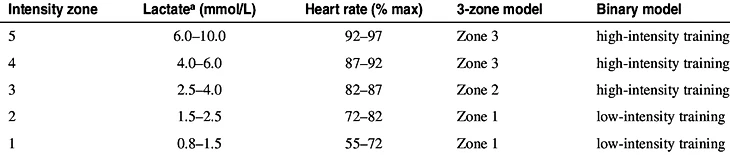 В циклических видах спорта на стайерских дистанциях ПАНО является более значимым показателем, чем МПК. Для развития ПАНО традиционно используют тренировки средней и высокой интенсивности – в 3 и 4 пульсовых зонах. Объем таких тренировок в процентах от общего составляет порядка 20%. Интенсивность может варьироваться в пределах от 90 до 120% от скорости/мощности ПАНО, а время интервальной работы – от 7 до 90 мин, в зависимости от соревновательных дистанций и уровня подготовки.