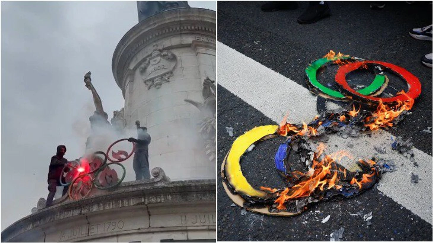 ● На демонстрации 1 мая протестующие не только требовали повышение зарплат, но и сжигали олимпийские кольца.