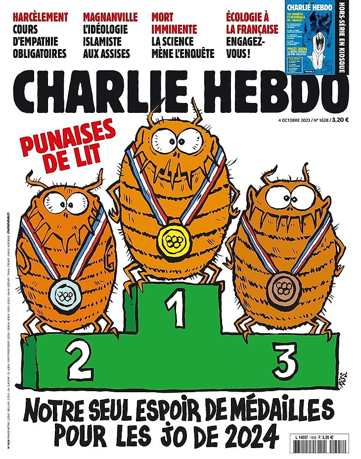 Французские спецслужбы даже подозревали Россию в распространении паники из-за клопов. Но карикатуру на клопов-олимпийцев публиковал и местный журнал Charlie Hebdo.