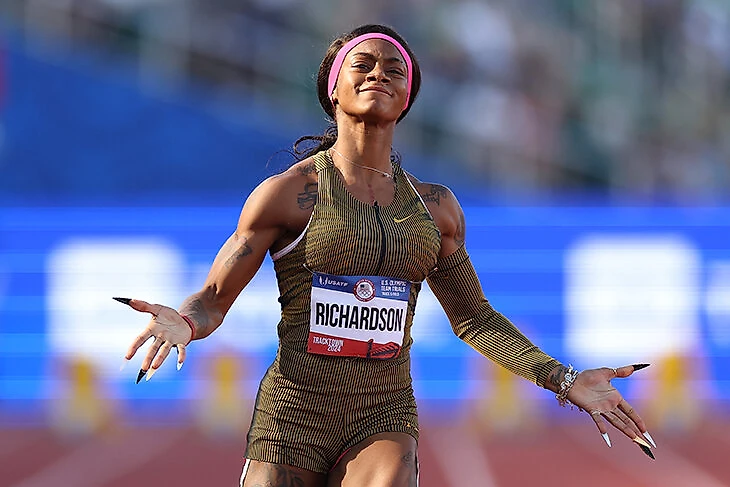 Токио-2020 она пропустила из-за проваленного теста на каннабис, зато сейчас – действующая чемпионка мира и лидер сезона (10,71). Забеги с ней стоит посмотреть хотя бы ради невероятного маникюра.
