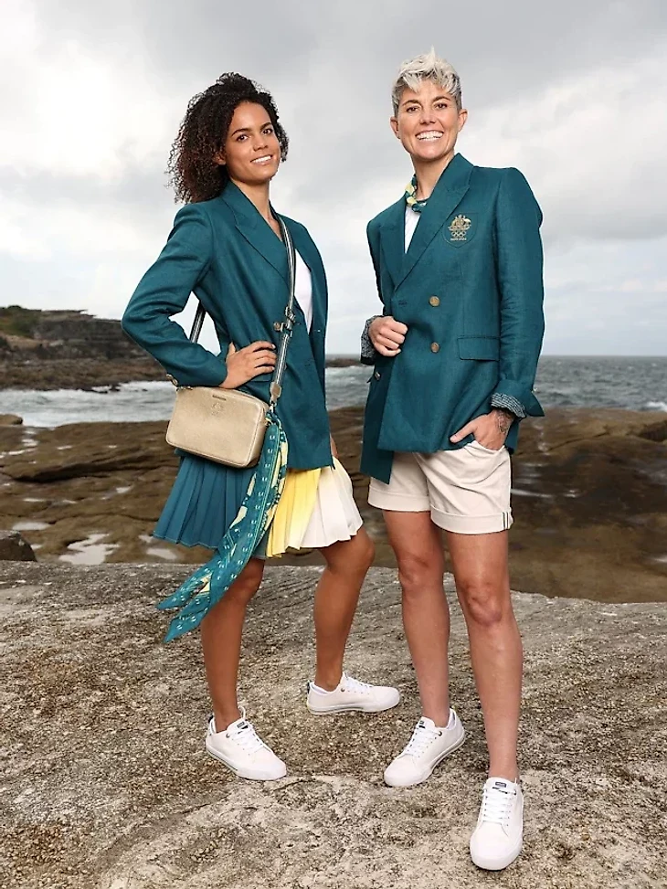Еще одним ярким нарядом церемонию открытия украсят австралийцы. Комплекты сшил бренд Sports Craft: изумрудные пиджаки и легкие шорты – для мужчин, пиджаки и плиссированные юбки – для женщин.