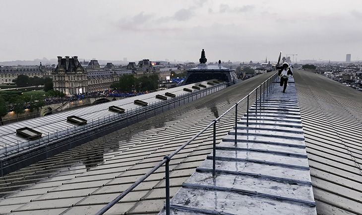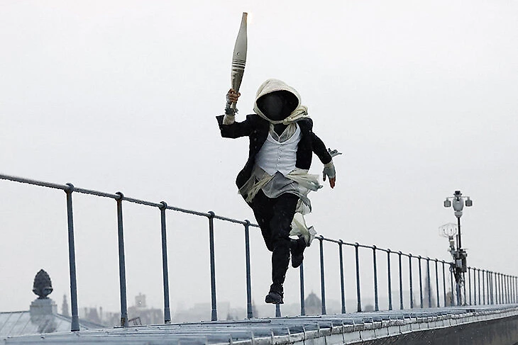Этот таинственный факелоносец появлялся на протяжении всей церемонии – бегал по крышам и выполнял трюки.