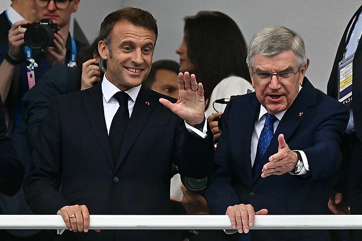 Президент Франции Эммануэль Макрон и глава МОК Томас Бах сидели рядом.