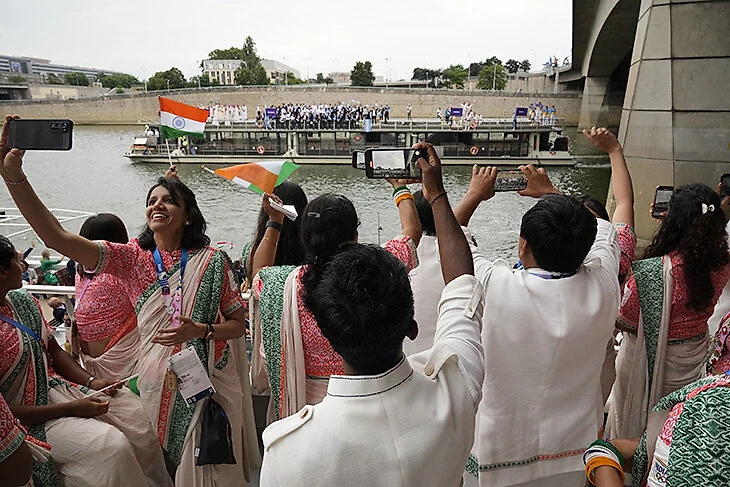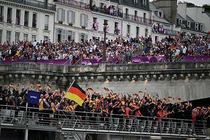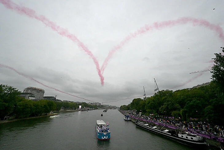 Спортсмены плыли на лодках по Сене – кто-то на отдельном кораблике, кто-то делил палубу с другими сборными.