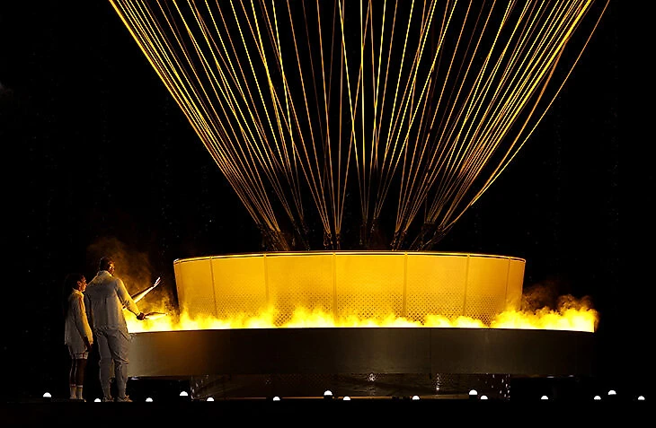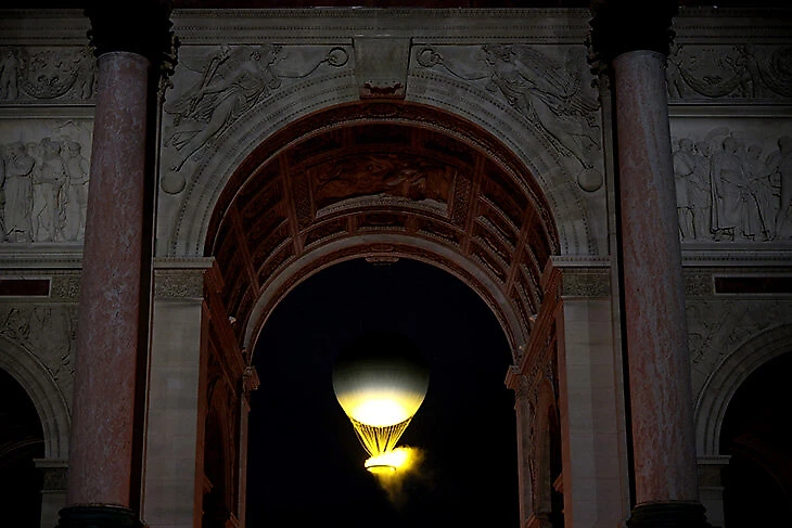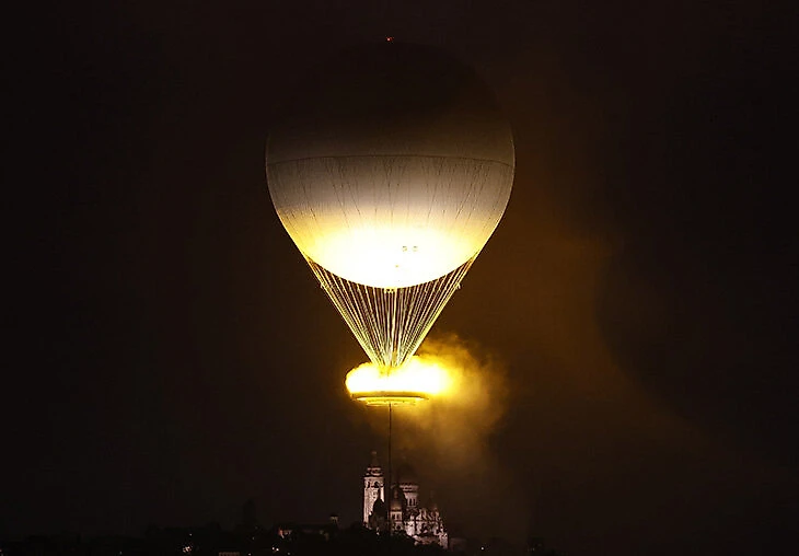 Огонь зажжен! Чаша – воздушный шар в честь первого полета такого шара на водородном двигателе в 1783 году.