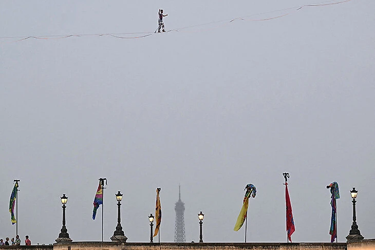 Канатоходец над мостом Пон-Неф.