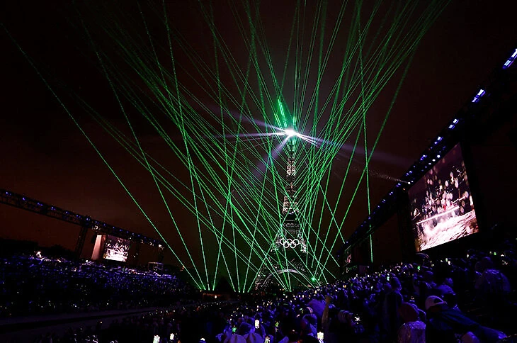 Лазер-шоу на Эйфелевой башне в ожидании главного события вечера.