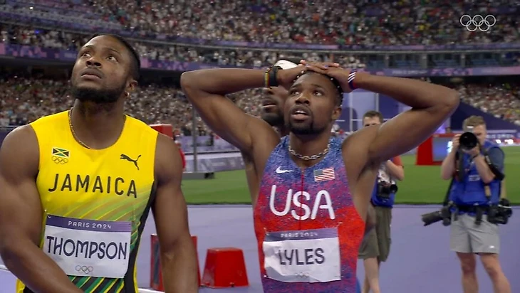 Если вам интересно, как выглядят пять тысячных секунды в жизни, то Ноа Лайлс и Кишан Томпсон показали это в финале мужской стометровки в Париже.