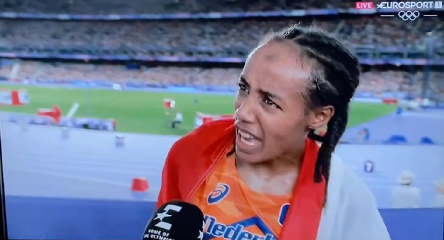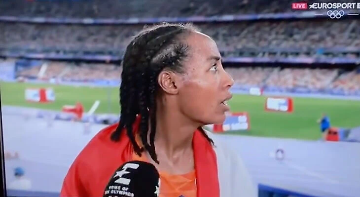 Вот тот самый момент, когда Хассан говорят, что Кипьегон дисквалифицирована, а сама Хассан вместо бронзы получает серебро.