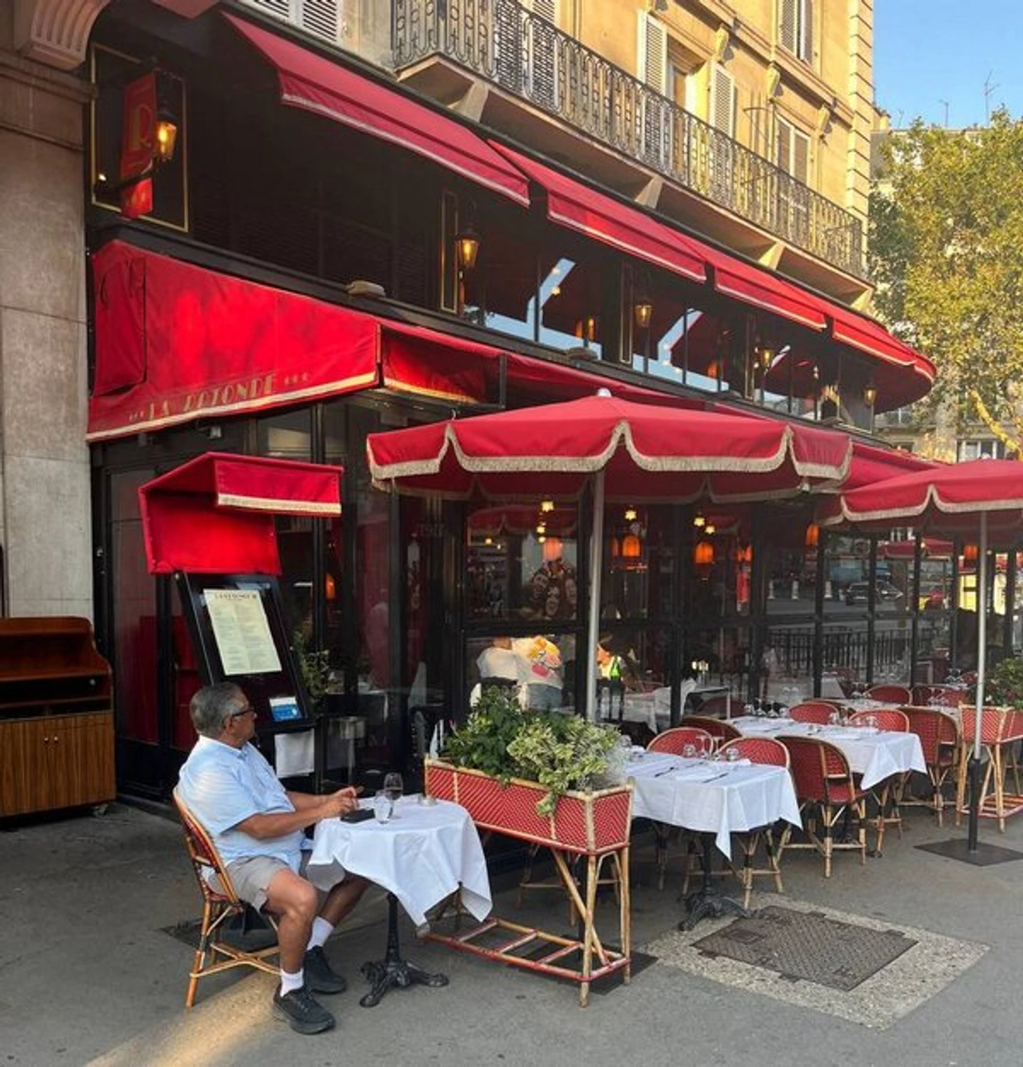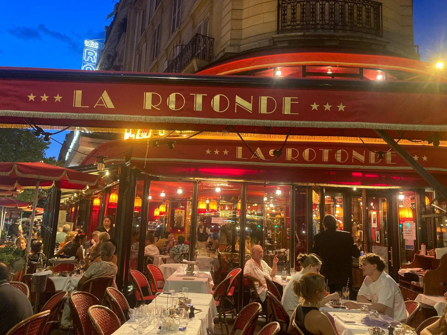 «Ротонда» расположена на углу бульвара Монпарнас и бульвара Распай. На входе – мужчина с сигарой и бокалом вина, классический парижанин.