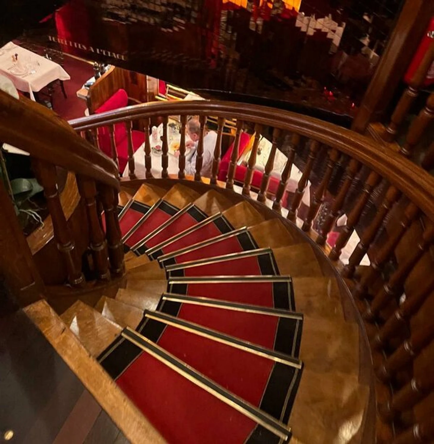 Внутри – абажуры, классическая парижская винтовая лестница, белые скатерти и изысканная сервировка.